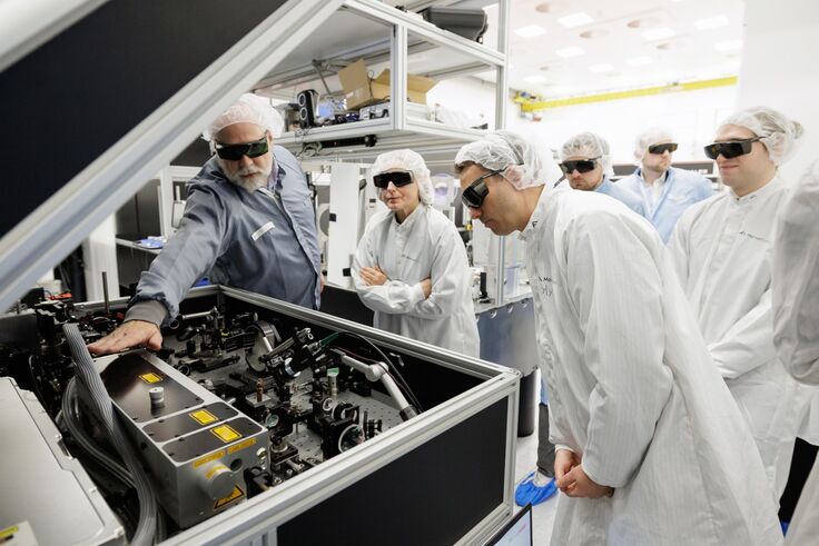 Der Abgeordnete Siegfried Mureşan informiert sich bei Marvel Fusion über den EFRE in Bayern