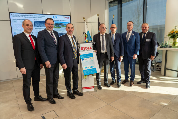 Bayerns Wirtschaftsminister Hubert Aiwanger übergibt Förderurkunde an die MOLL Batterien GmbH
